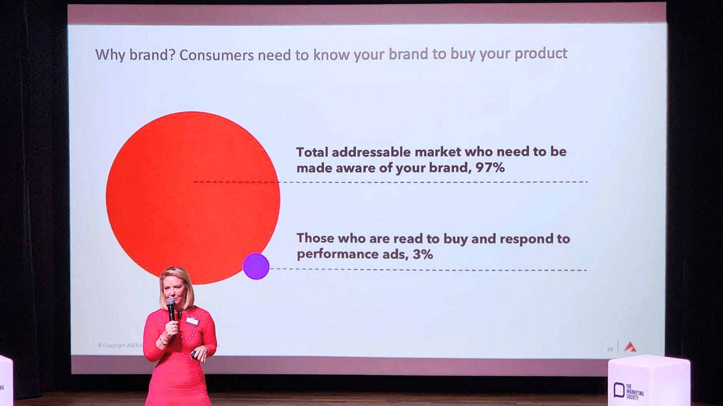 We recommend that at least 30% of your budget be dedicated to brand building. The sweet spot, depending on your category, is between 40–60%. I know that’s tough in APAC where CFOs often want proof before they’ll sign off. But it’s our job as CMOs to shift the narrative from clicks to commercial impact.