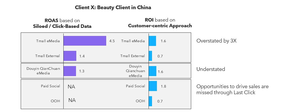 Take the example of a leading beauty brand. Based on last-click data, ecommerce ads looked like the star performers - delivering returns three times higher than they actually did. Meanwhile, channels like Douyin Qianchuan, which quietly boosted brand awareness and contributed across the funnel, were dramatically undervalued. And upper-funnel brand media like paid social and OOH are often ignored entirely, just because they didn’t deliver the final click.