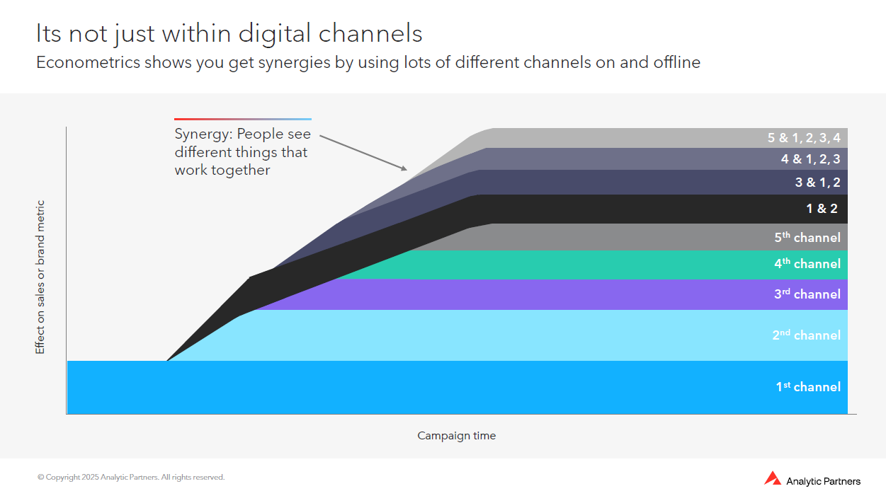 The math gets exciting here. According to Analytic Partner’s ROI Genome, using 5 media channels delivers up to 70% more ROI than concentrating on just one. In APAC’s platform patchwork, the effect is magnified