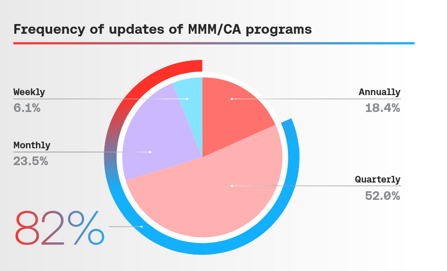 Among organisations using MMM, or it’s big brother Commercial Analytics, 82% receive new or updated results at least quarterly. This aligns with the reality that major advertisers revisit budgets and reallocate spend multiple times per year as conditions change.